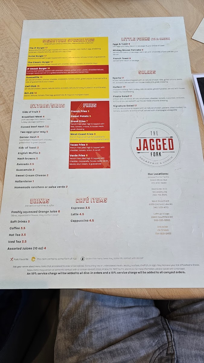 The Jagged Fork Menu